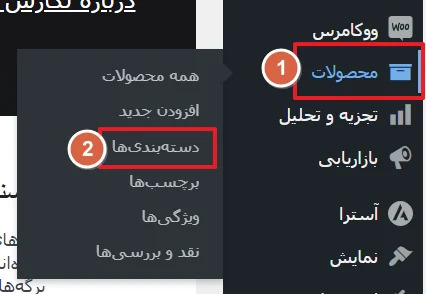 برای ساخت دسته بندی جدید برای محصولات در ووکامرس وارد بخش محصولات > دسته بندی ها شوید.